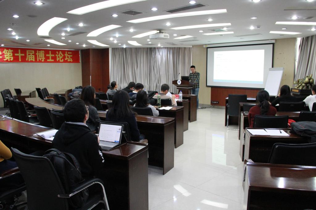 博士论坛主要是以学术论文进行交流展示,为了区分专业性,分成管理和经济两个会场。此次博士论坛于8:30正式开始,经济组由方毅教授、邓创教授、张小宇副教授、郭凤鸣副教授担任论文点评嘉宾,方毅教授主持会议。管理组由辛本禄教授、杜玉申副教授、高勇副教授、孙凤英副教授担任论文点评嘉宾,辛本禄教授主持会议。此次论坛论文涉及货币政策、金融危机、金融市场波动、经济增长、住房信贷、创新创业、投资行为等多个论题,论文内容丰富,选题新颖,观点创新。论坛期间,报告人与参会教授和同学们进行了充分的学术交流,围绕文献使用方法、实证研究方法、论文写作规范等问题展开了积极的讨论,现场气氛热烈活跃,大家在讨论中获取更新的观点、得到了学术启发,是一次难得的学习机会,也让同学们受益匪浅。
