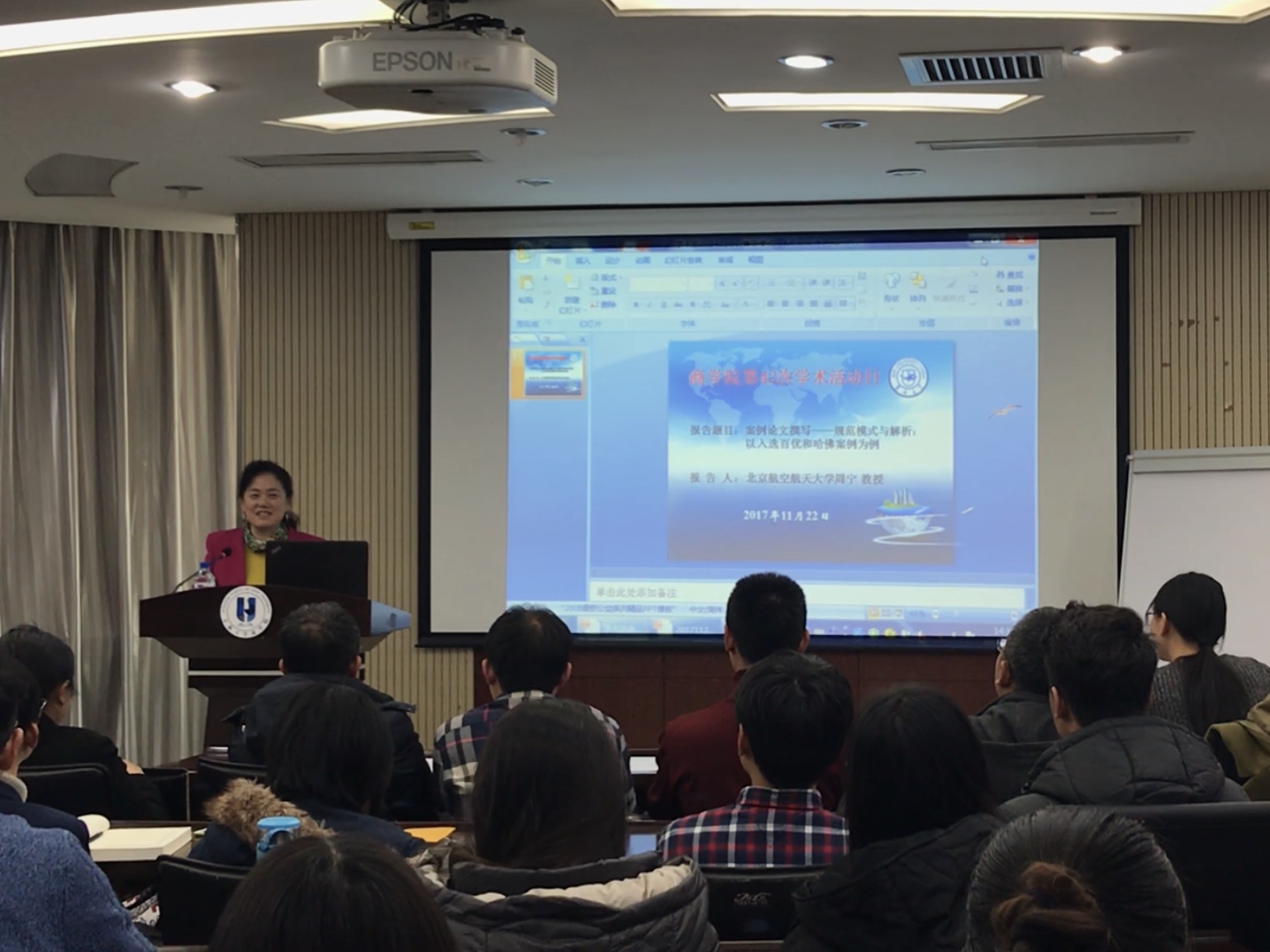 本次讲座,周宁教授做了充足的准备,她以自身经历为例,从教学案例开发的国际规范与模式简述、全国工商管理百优案例的设计与解析、哈佛案例——项目进度管理设计与解析、北航MBA案例论文撰写规范与模式四个方面,和与会者分享了案例开发与案例教学的经验。老师和同学们也都认真聆听,老师们还和周宁教授就案例论文撰写中存在问题进行了交流,现场气氛非常活跃。
