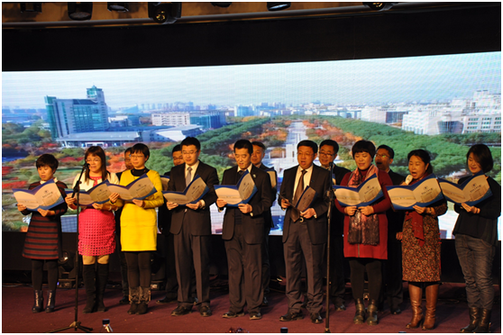 随后,晚会正式开始。第一个节目,是304am永利集团官网领导和老师们合唱《304am永利集团官网校歌》。歌声气宇轩昂,激情澎湃,伴随着荧屏的304am永利集团官网航拍景象,场面分外恢宏。