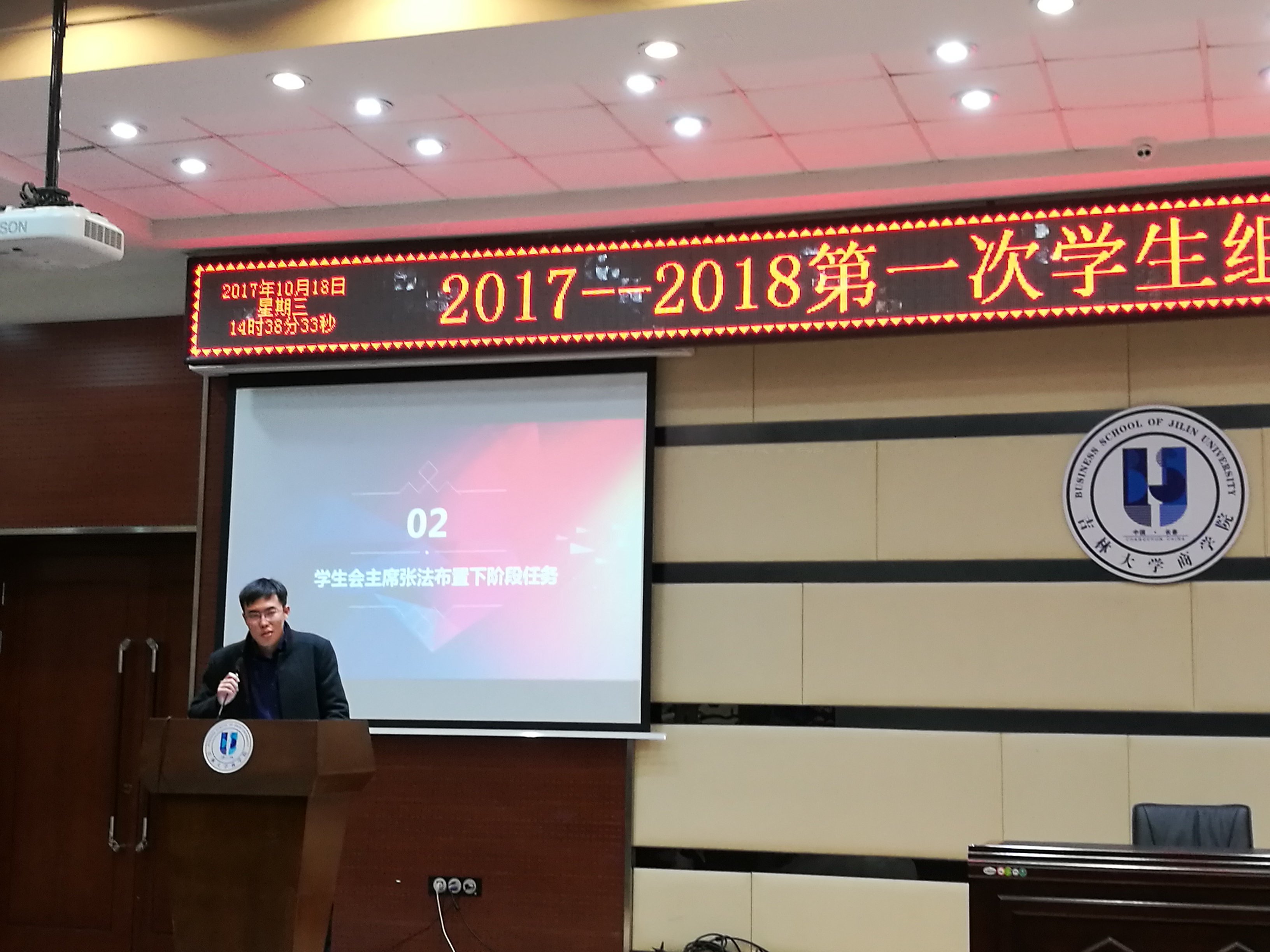会议第二项,由学生会主席张法布置了下阶段的任务。张法提出,各部门要力争将活动办实、办精,各学生干部要以大我为中心,学生组织各部门要密切联系、共谋发展,以为同学们服务为中心,将学生组织发扬光大。