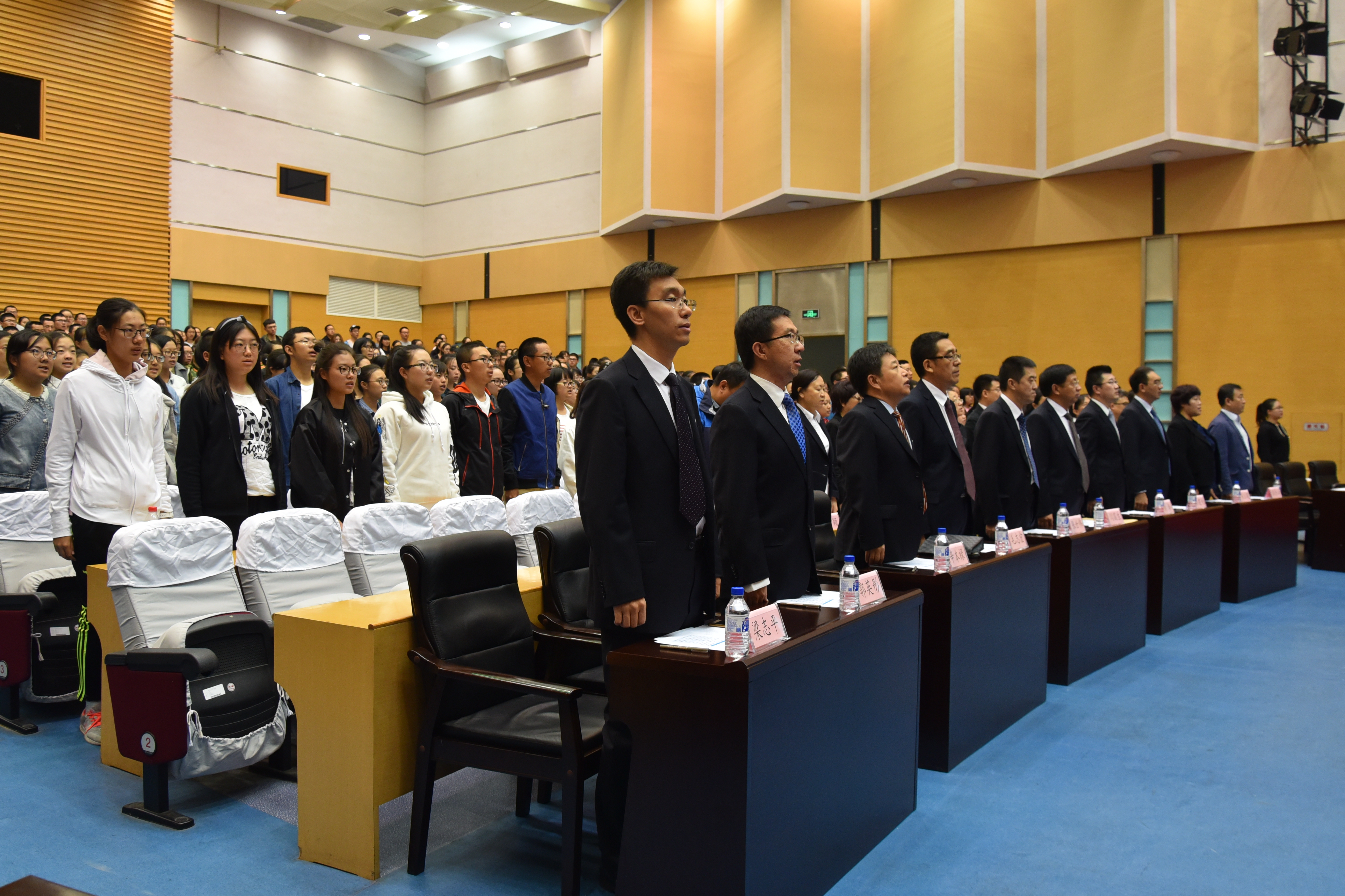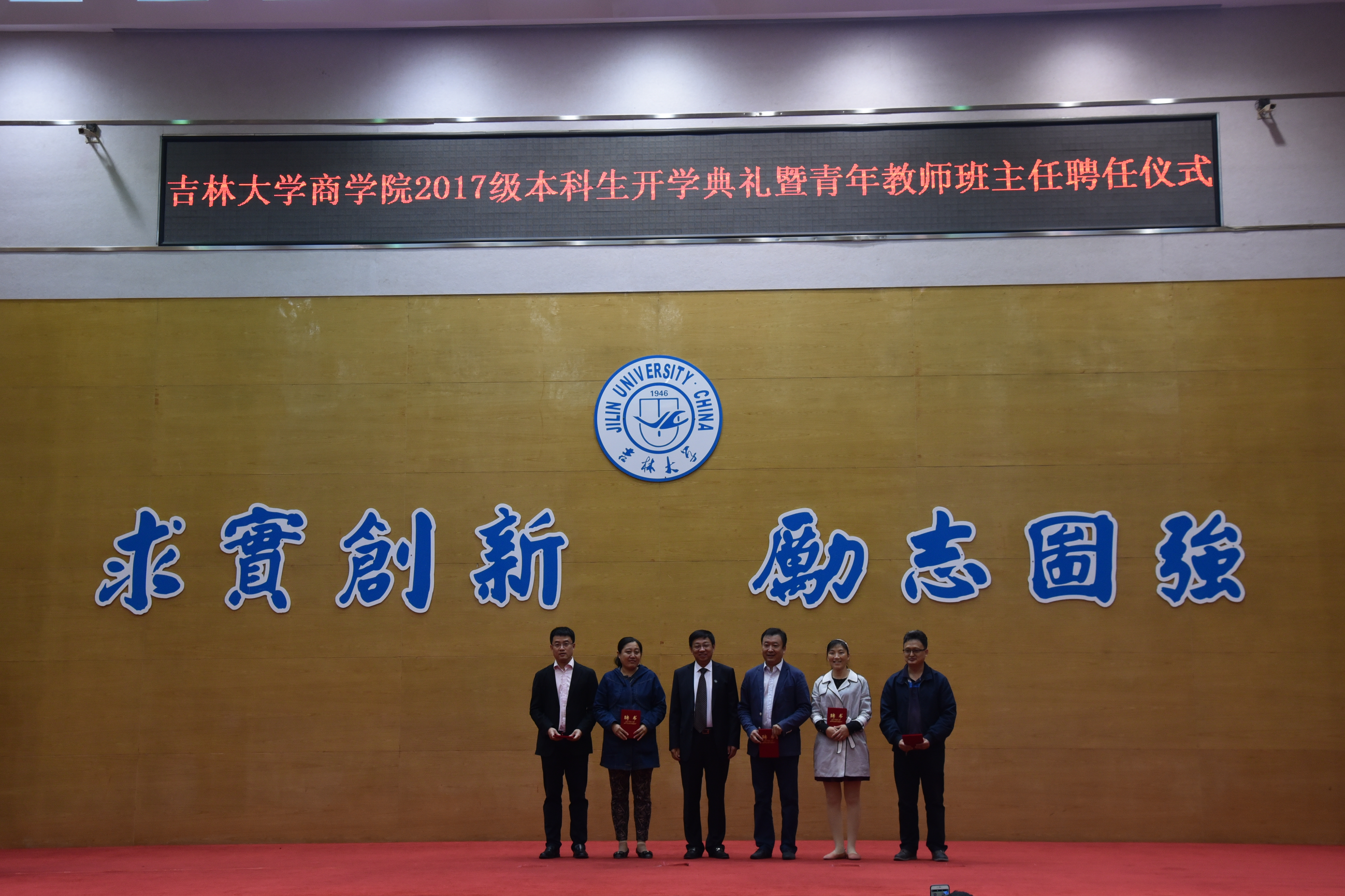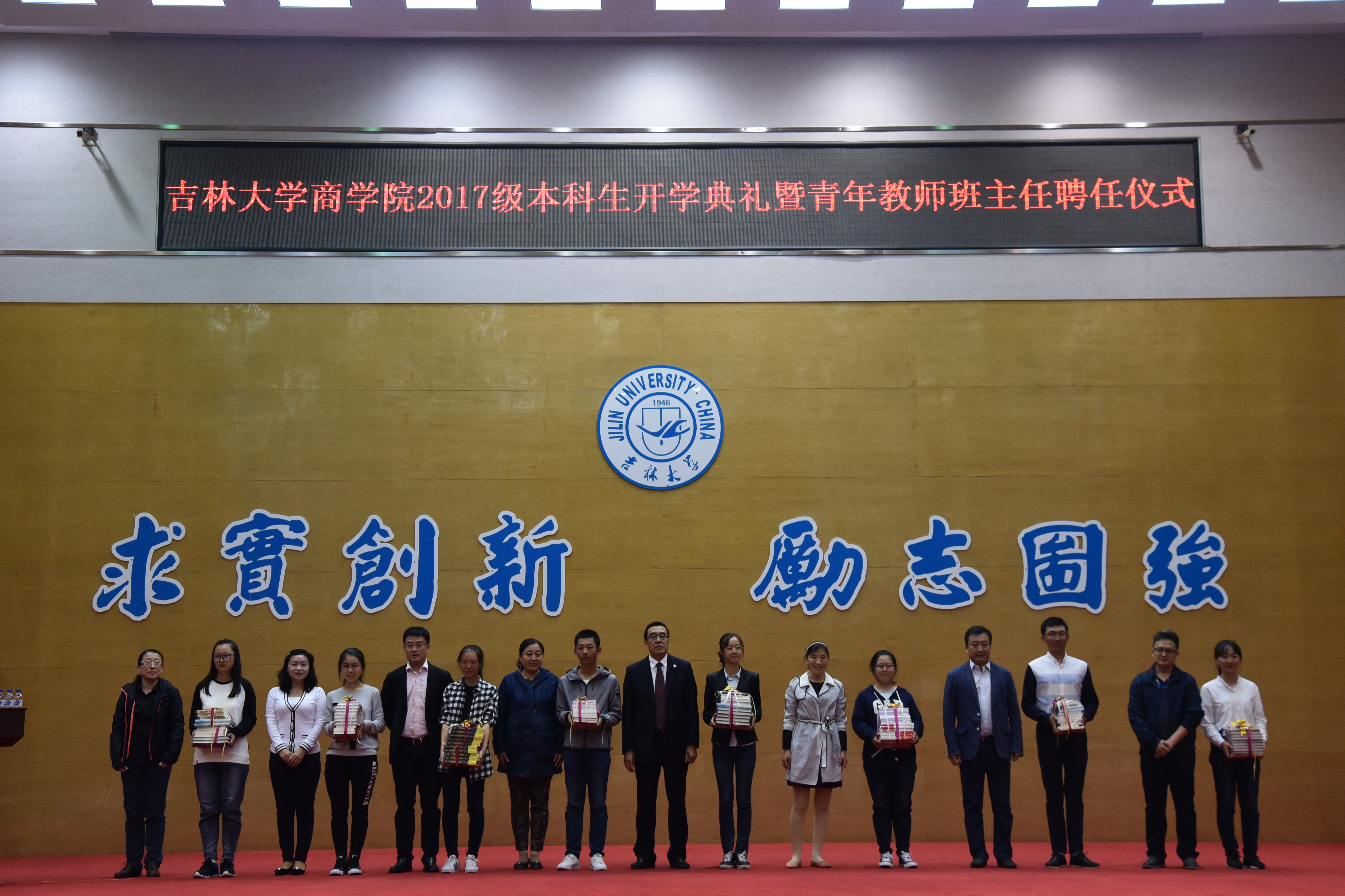 9月23日上午9:00,304am永利集团官网在中心校区东荣报告厅举行2017级本科生开学典礼暨青年教师班主任聘任仪式。学院领导班子、各系主任、副主任、教师代表、青年教师班主任、本科新生家长代表、2017级413名本科生参加了大会。会议由学院党委副书记兼副院长李帅主持。
