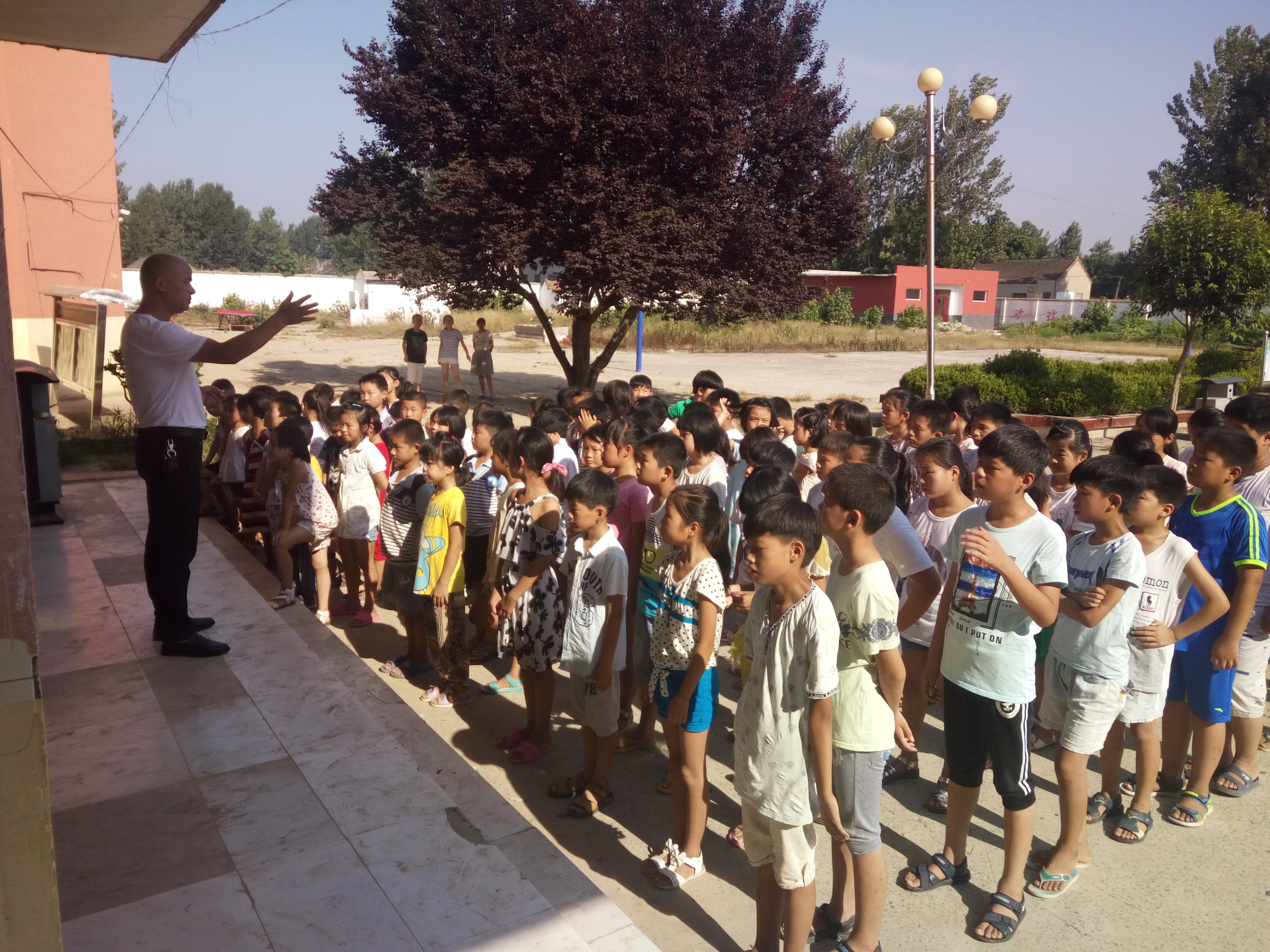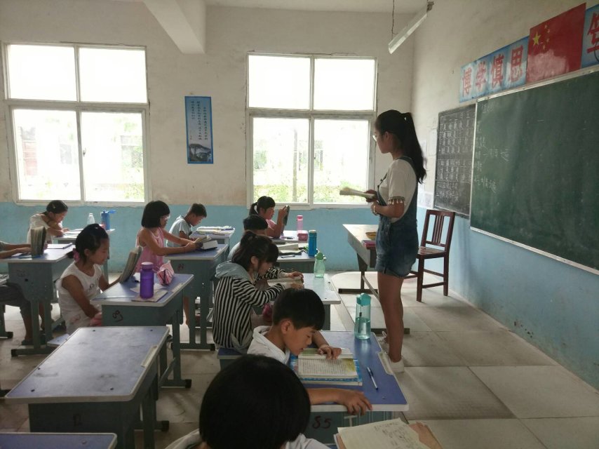 我们又走进村里的小学,借着支教活动校长给学生们开大会,我们请求校长给小学生普及环保知识,绿色环保从小学生做起。顶着大太阳,孩子们在教学楼门前集合,听校长说环保小知识,介绍美丽中国的宏伟蓝图,校园环境也是美丽中国的一部分,虽然是放暑假期间,校园卫生也不能有所松懈。孩子们听的非常认真,我们非常感动。后来我们走进了班级,挨着班讲述绿色环保的重要性,或许低年级小朋友并不听太懂,但是五六年级同学已经很大了也懂事了,我们顺便玩了一个环保知识抢答的小比赛,孩子们玩得很开心,玩的同时记住了好多知识,我们给表现好的同学发了棒棒糖做鼓励。