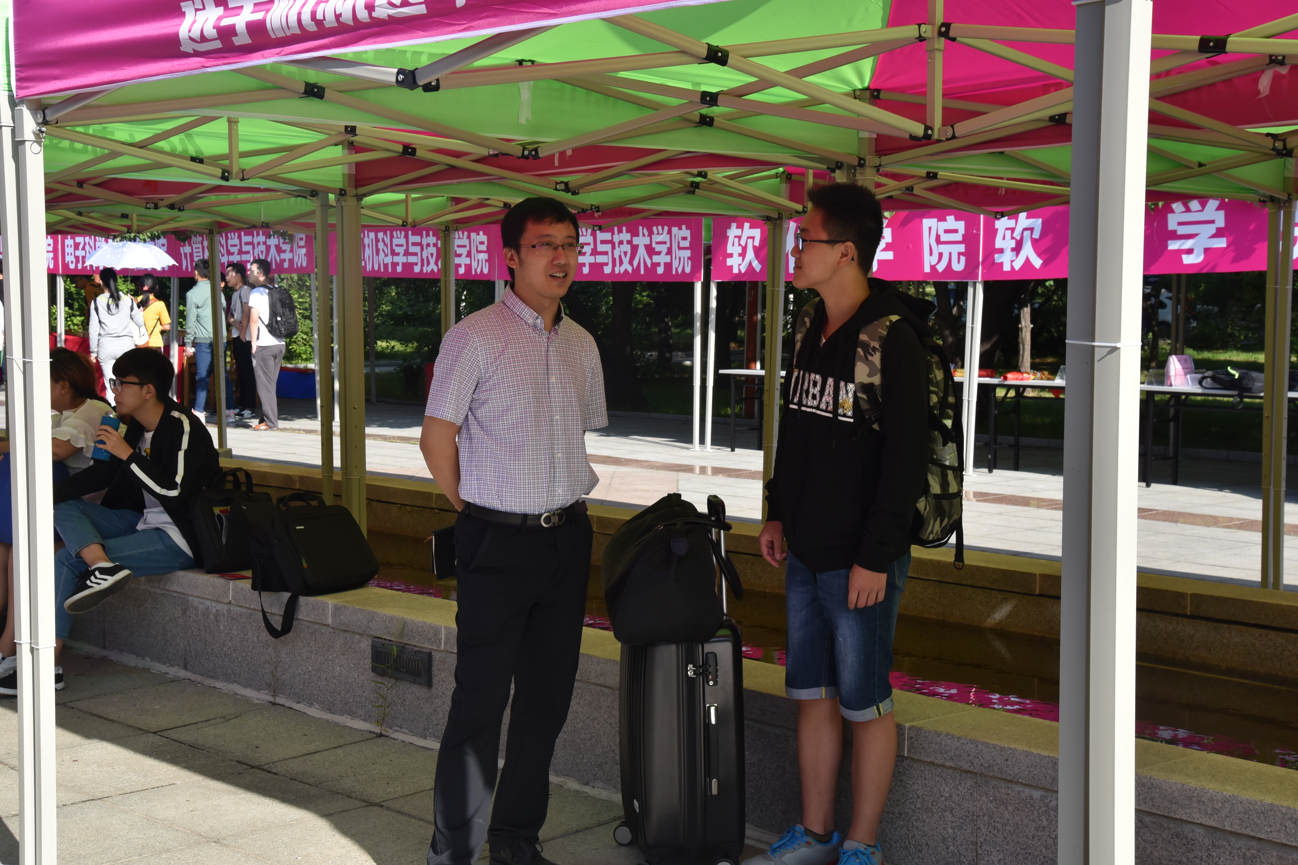 304am永利集团官网党委副书记李帅老师,304am永利集团官网学工办副主任兼2017级辅导员荣诗达老师,304am永利集团官网团委副书记兼2015级辅导员金博老师,304am永利集团官网2016级辅导员刘天目老师在迎新点指导,与新生和家长热切交谈,表达304am永利集团官网的关切和欢迎。