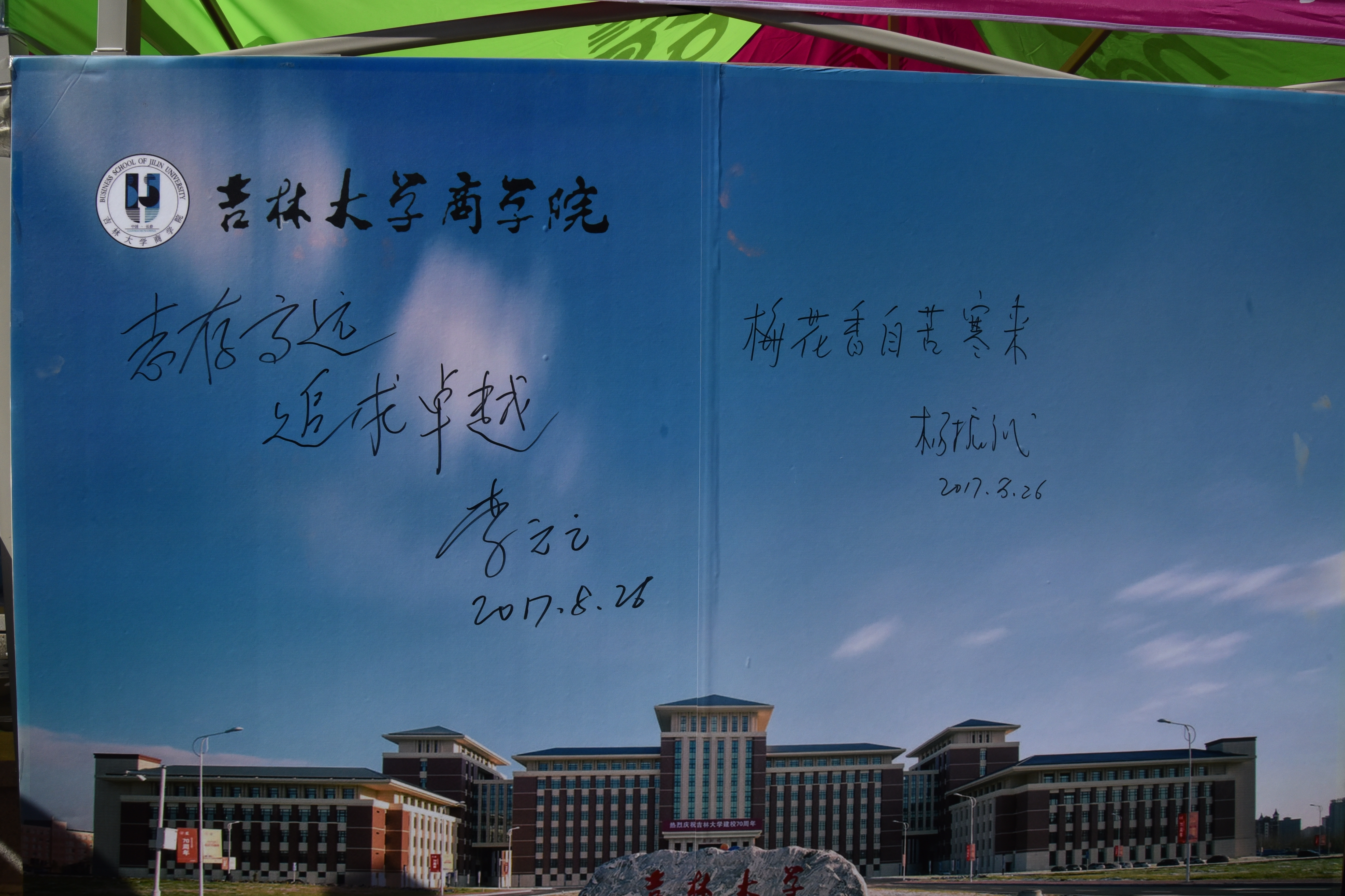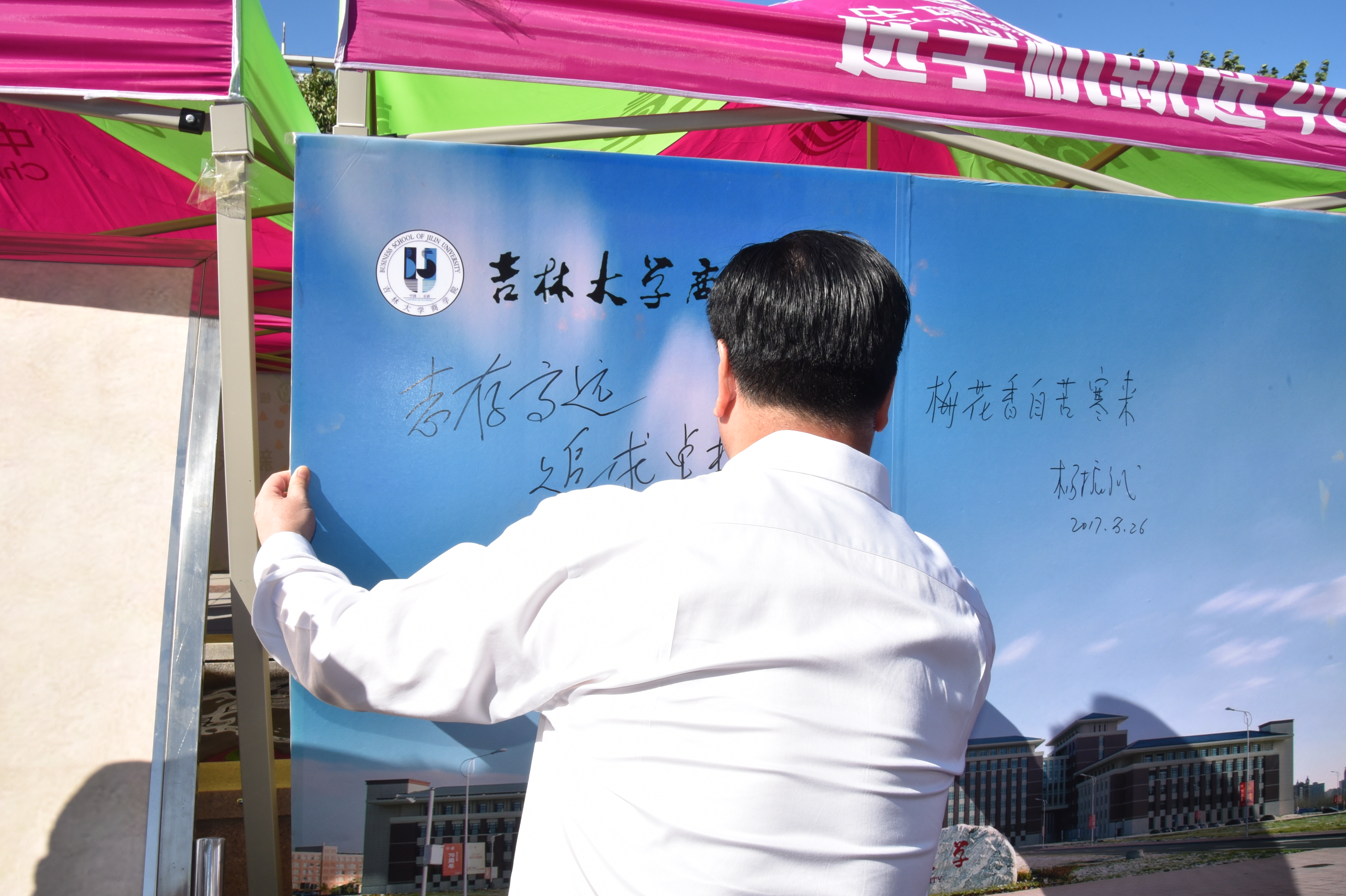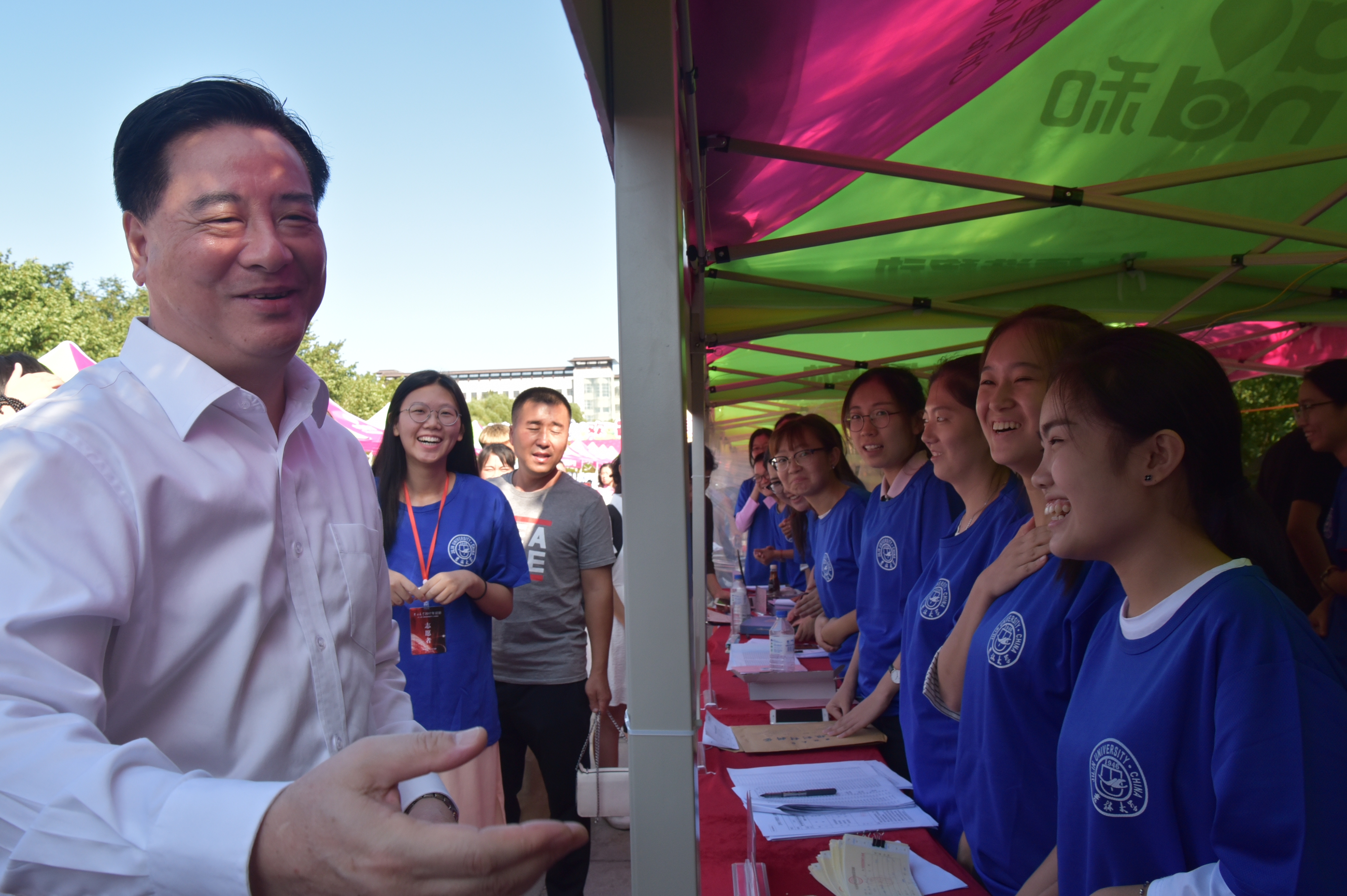 304am永利集团官网在场的全体师生用掌声热烈欢迎校长的来临,校长对在烈日下仍辛苦工作的同学们表示了慰问,并亲切的同每一个人握手。李元元校长还亲切的同304am永利集团官网新生握手交流,欢迎新同学来到304am永利集团官网就读。接着校长和全体工作人员合影留恋。最后在校长在304am永利集团官网的入学纪念板上留下了对全体吉大师生的殷切期望——“志存高远,追求卓越”。