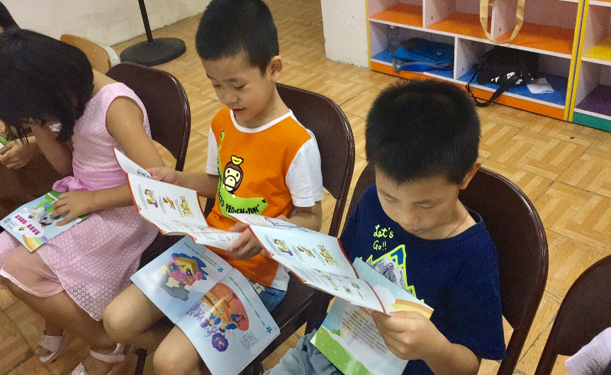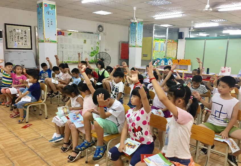 接着,志愿者鸿猷以有奖问答的游戏活跃了现场的气氛。问题涉及了读本、PPT上的许多知识,台下的小朋友纷纷举手回答,竟都能回答正确。娱乐的同时,孩子们对宣讲知识又重温了一遍。