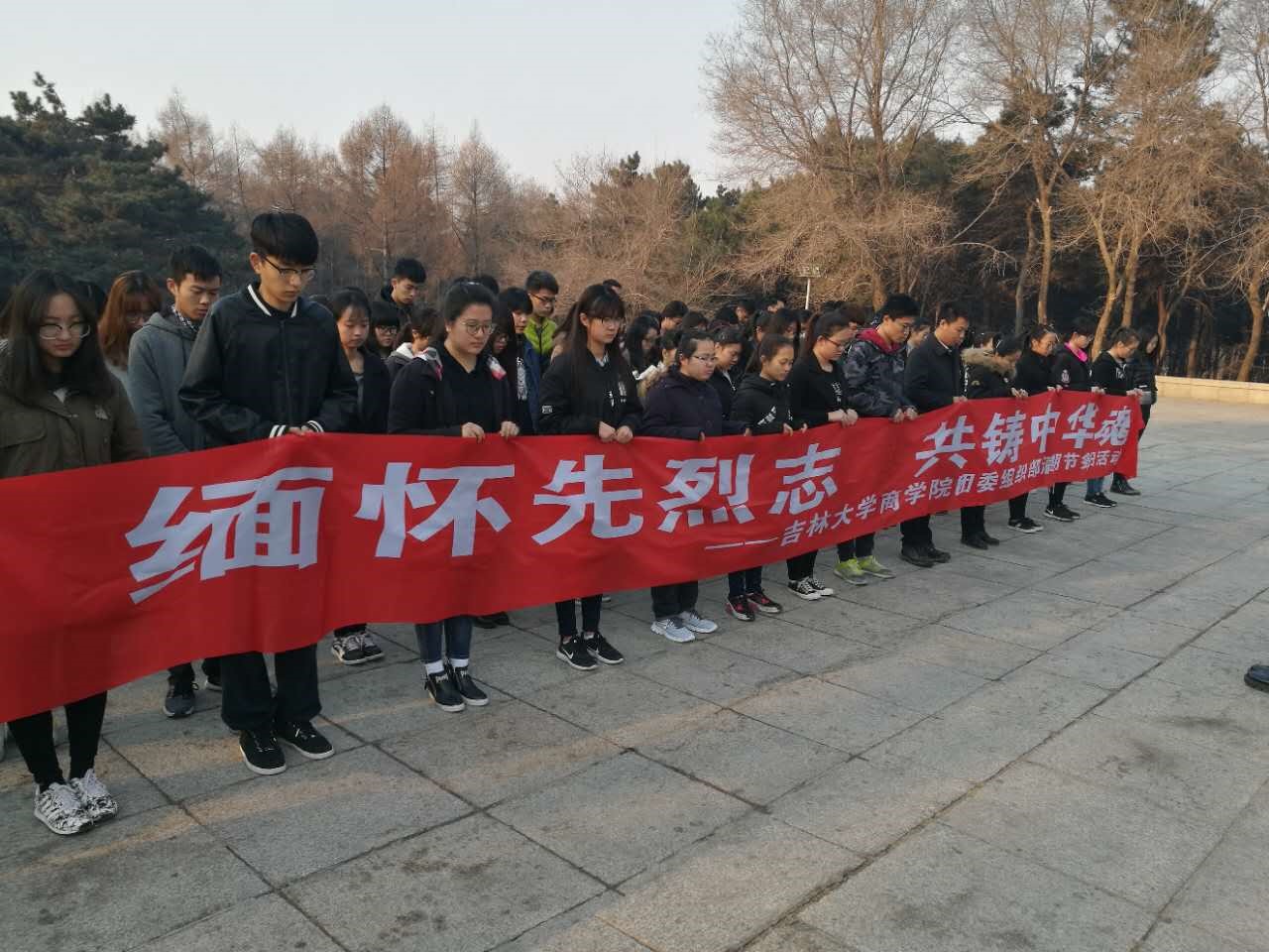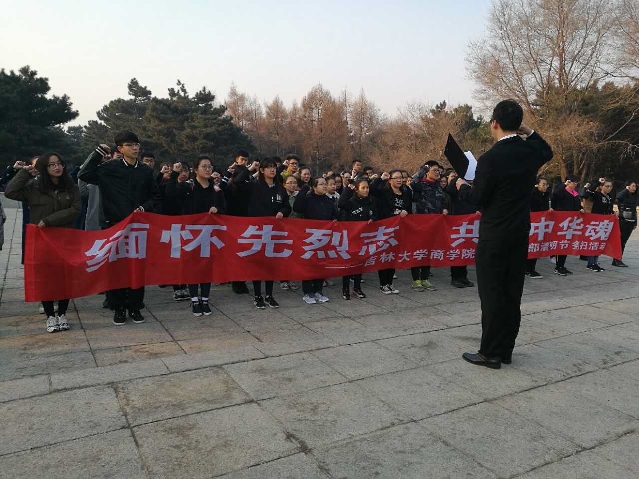 4月1日8:00,为悼念革命烈士,缅怀先烈的丰功伟绩,发扬先烈遗志,304am永利集团官网团委组织党员、入党积极分子和部分学生干部代表在南湖公园长春烈士纪念碑举行了清明节祭扫活动。