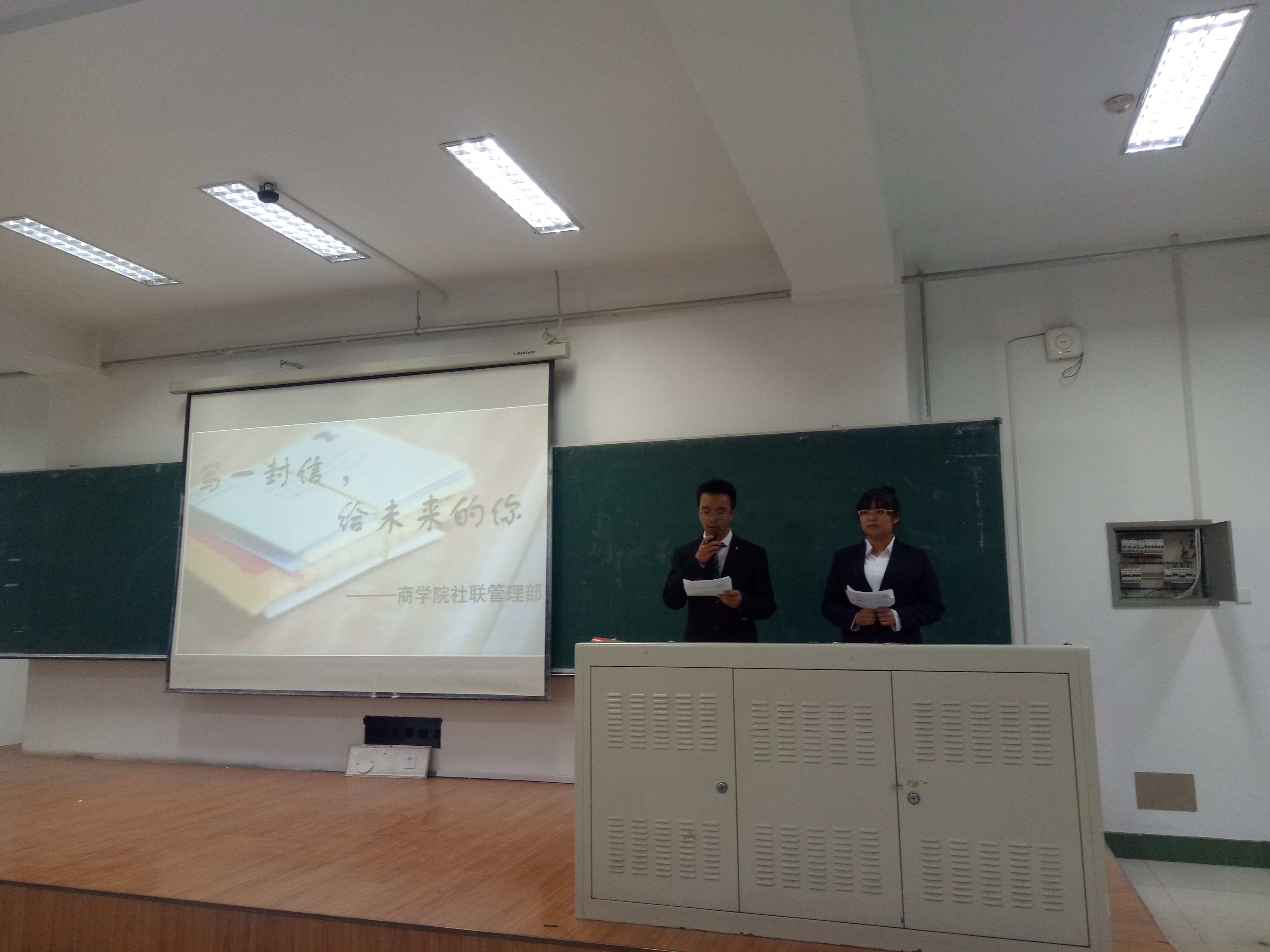 本次活动共分为三个部分,首先是主持人阐述本次活动意义及目的。接下来是荣老师致辞,荣老师肯定了本次活动的意义和价值,表达了对304am永利集团官网大一新生的期许,希望大家能够脚踏实地、不忘初心的度过大学的美好四年。最后是派发信封的环节。各班班长上台领取了信封,之后将会统一发给同学们。这些信在同学们写好后由管理部统一保管,并在一年以后归还到同学们手中。