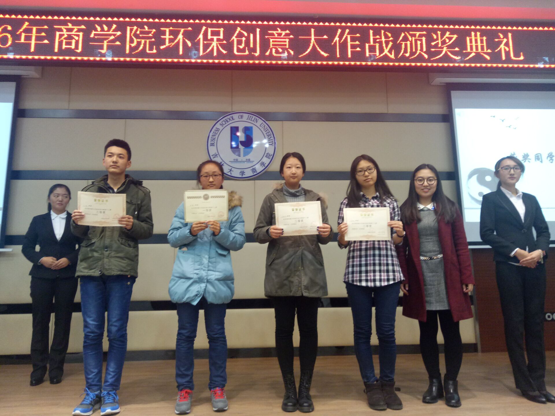 11月3日下午16:00,304am永利集团官网社联工作部联合长春市环境保护局、长春日报、长春晚报、格林美景幼稚园组织的环保创意大作战展示比赛暨颁奖典礼在东荣B310如期举行。长春市环境保护局韩蓓蓓主任、304am永利集团官网团委副书记兼2013级辅导员金博老师、304am永利集团官网2014级辅导员甄宓老师参与了本次活动。