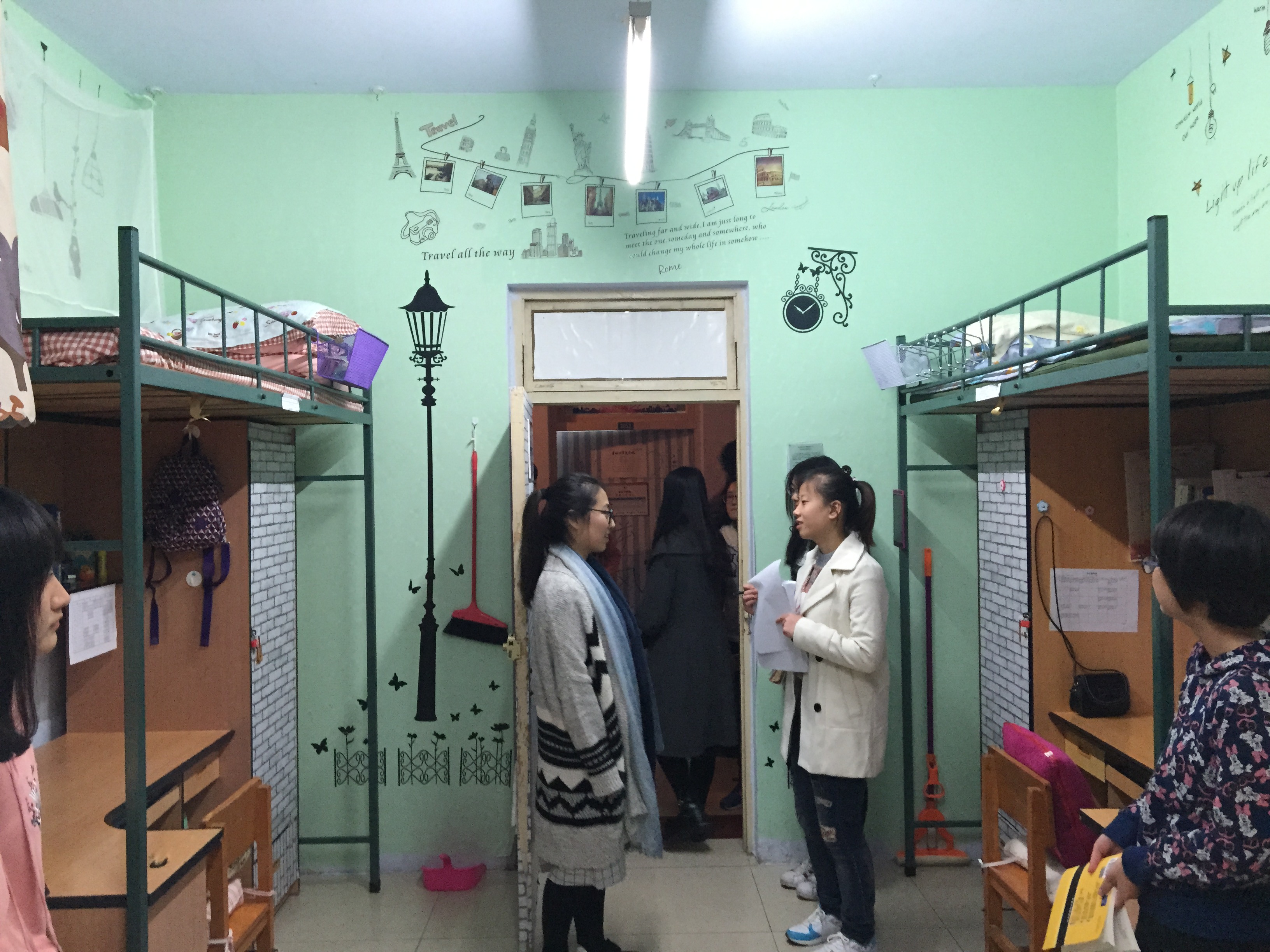 10月17日20:00,304am永利集团官网生活部成员们在304am永利集团官网团委副书记兼2013级辅导员金博老师的带领下,于大学城宿舍楼开展了2016级学生寝室的检查工作。在本次查寝学院提前发布了通知,同学们也都对各自的寝室进行了全面的打扫。