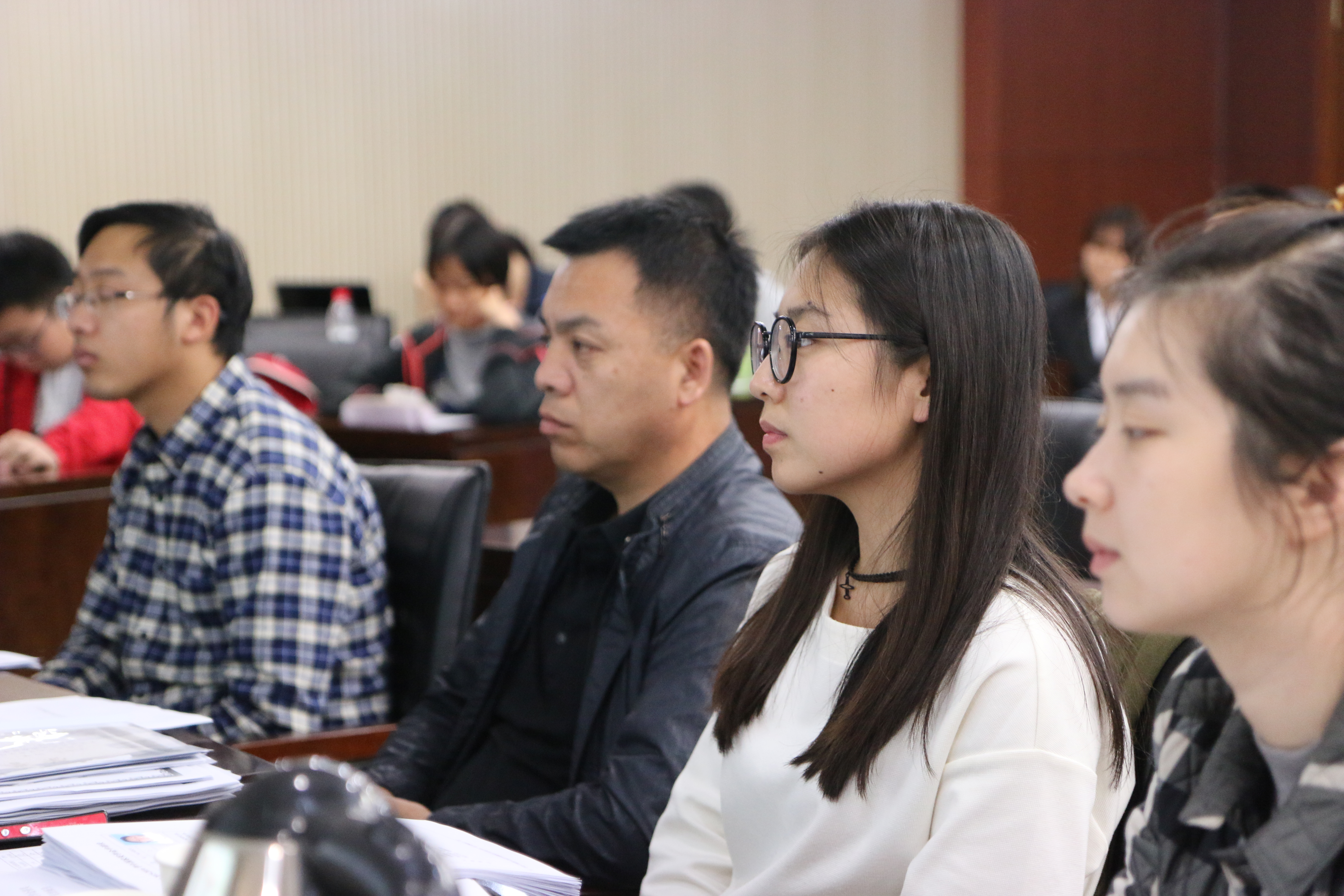 在座的老师和同学们认真的倾听注意着每位同学的叙述展示内容,以严谨的态度对待此次答辩评分,他们不仅通过考察同学在答辩现场的展示情况,更多结合参与答辩者的品德学识、在校成绩、创新能力等个人综合素质来予以评分和投票,以确定获得国家奖学金的同学。