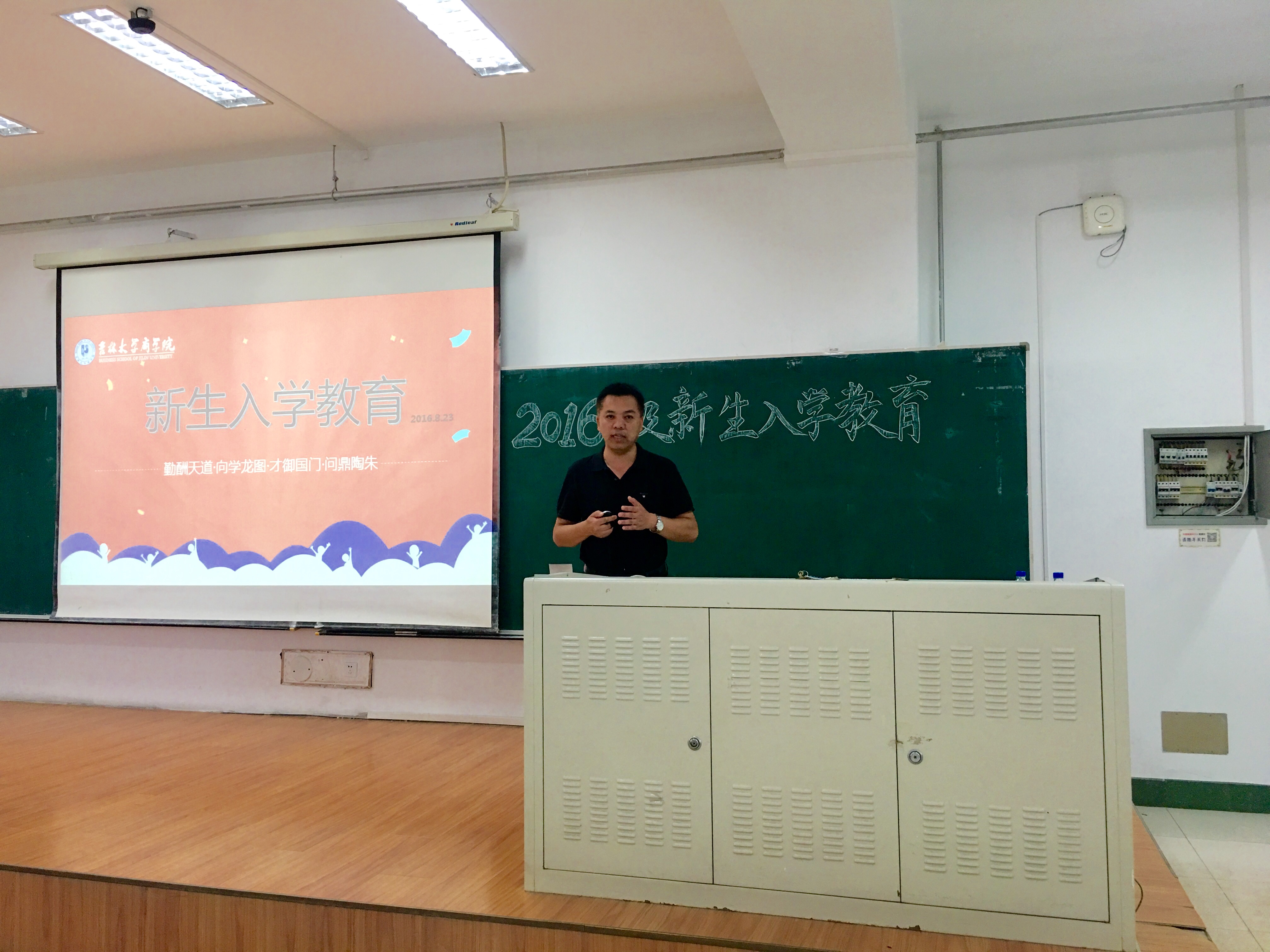 8月23日上午8点,304am永利集团官网在三教九阶进行了2016级新生入学教育大会,出席会议的嘉宾有304am永利集团官网党委副书记兼副院长范庆文老师、2013级辅导员金博老师和2016级辅导员刘天目老师。