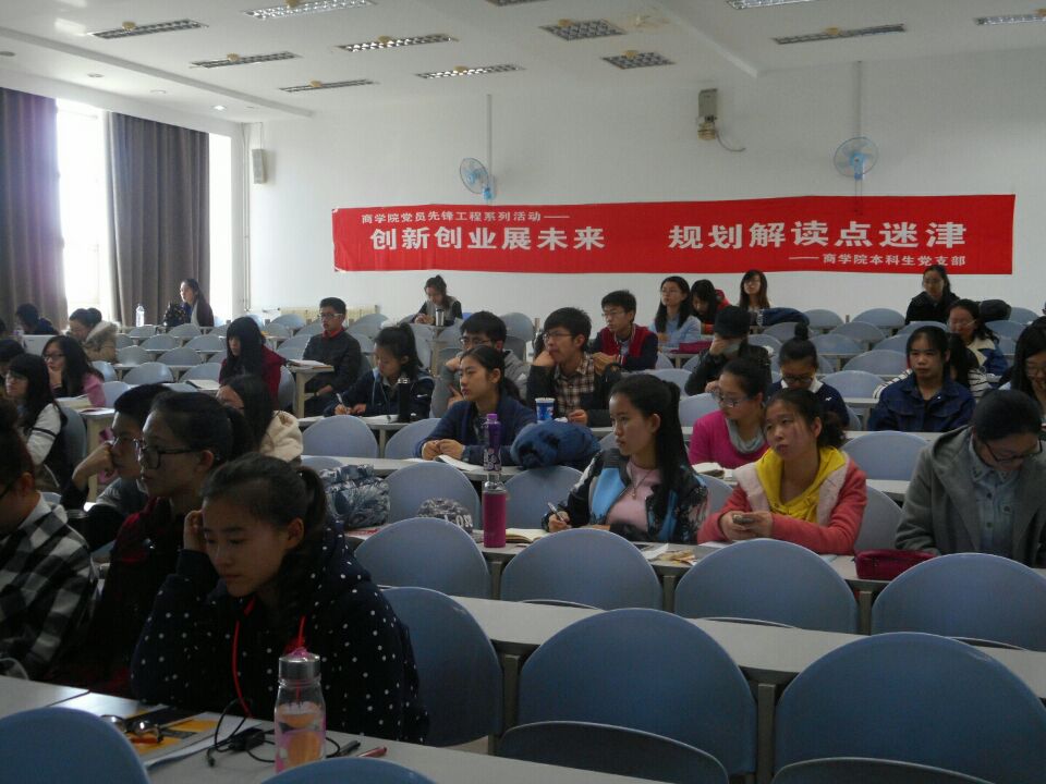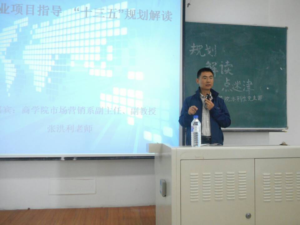 4月9日下午1点30分,由304am永利集团官网本科生党支部及学生会励志图书社主办的创新创业项目指导及“十三五”规划解读讲座在三教十一阶举行,本次讲座的主讲嘉宾是304am永利集团官网市场营销系副主任、副教授张洪利老师。