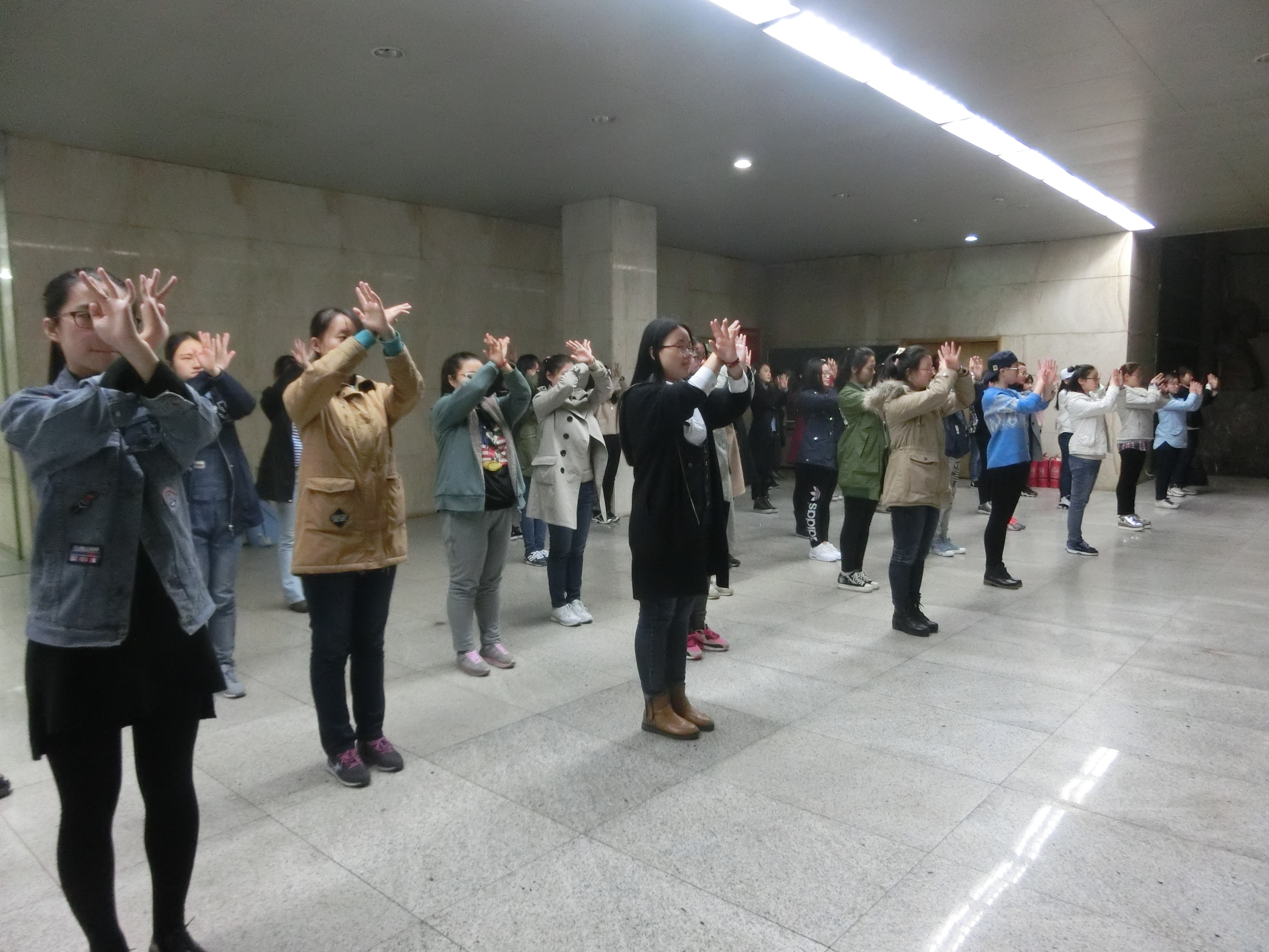 为了迎接304am永利集团官网第55届运动会,在运动会上展现我院学生的风采,我院于4月11日晚20点20分在东荣大厦一楼大厅开始了运动会相关团体项目的准备活动。