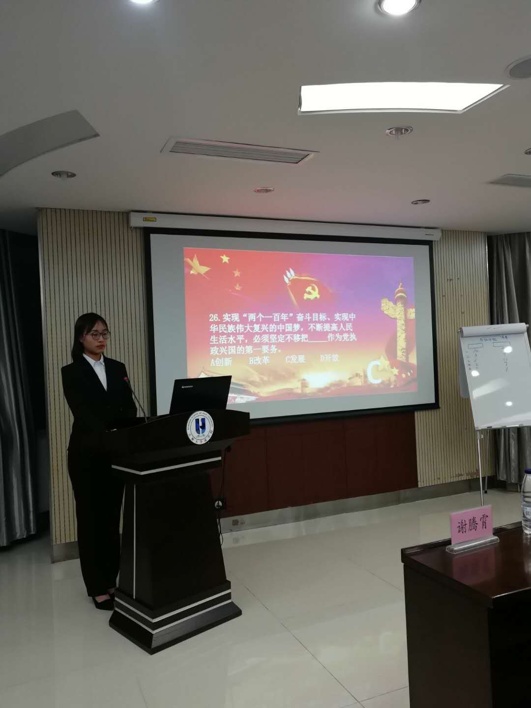 接着进入了五进二的晋级赛,晋级赛的题目与初赛相比,题型更新颖,问题更困难,内容更深刻,让参赛选手们着实废了不少劲。经过这一轮精彩的比拼,参赛选手的优秀表现使更多同学们有了深刻了解党团知识的决心。