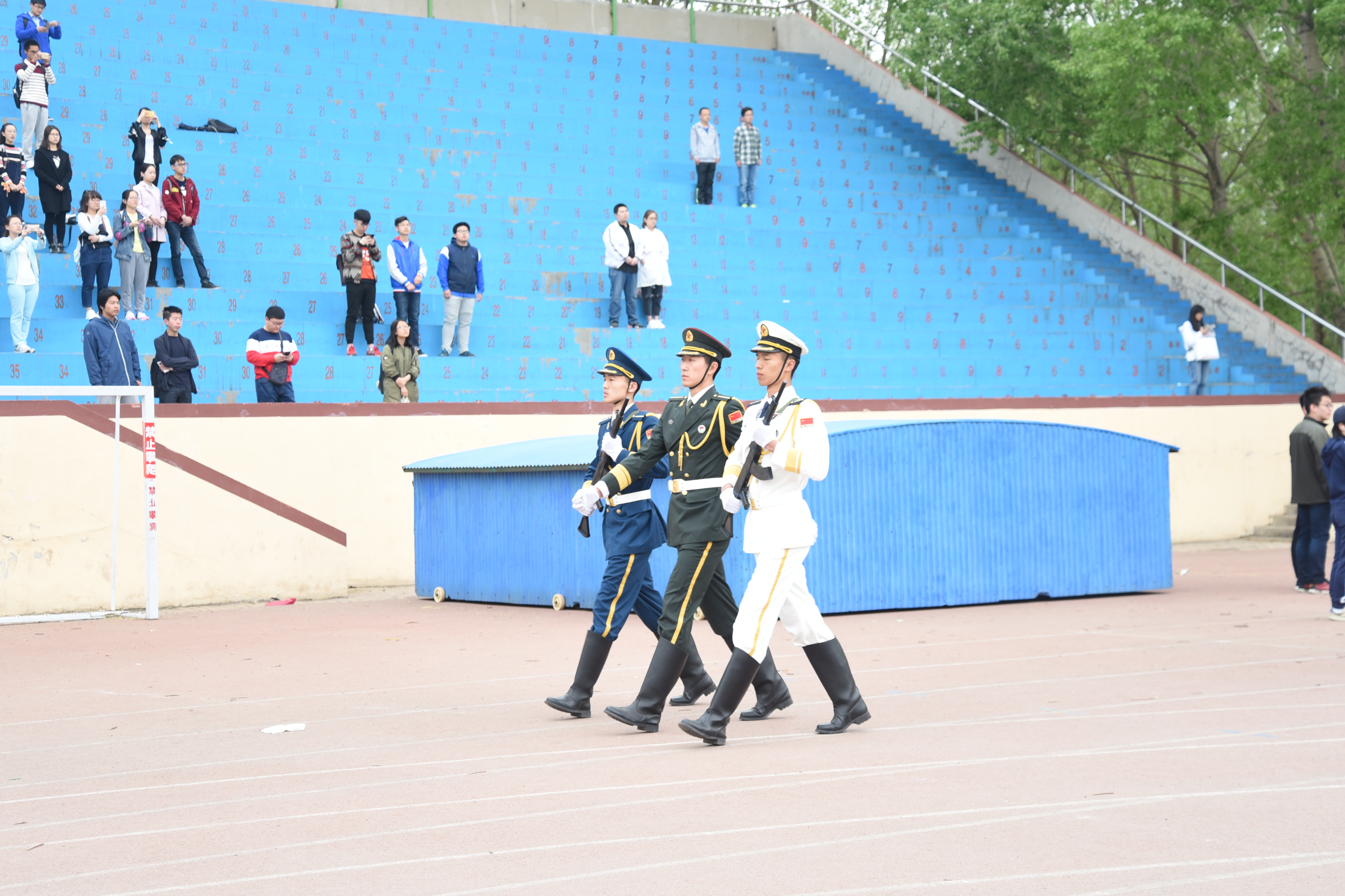 接着,升国旗、奏唱国歌,全体人员行注目礼。伴着铿锵有力的国歌,五星红旗冉冉升起,歌声回荡在体育场上,心中油然而生的是作为时代预备军的使命和光荣。